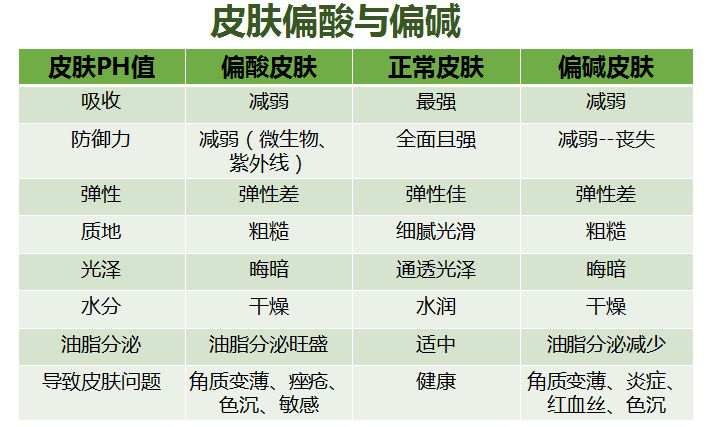 健康亚洲人的皮肤呈弱酸性,PH在4.5-6.5之间。PH在正常范围内时,皮肤对营养的吸收、抵御外界侵害的能力都处于较佳状态,于是肌肤看起来有弹性、有光泽、水嫩、紧致。如果,PH值一旦出现偏差,那么我们的皮肤就会发生如下变化。